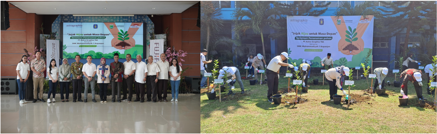 Kepanjen, August 7, 2025 - Astragraphia participated in environmental conservation through the planting of Crystal Guava and Butterfly Pea trees on Thursday, August 7, 2025, at the Mas Mansur Hall, Campus 1, SMK Muhammadiyah 1 Kepanjen. This activity demonstrates Astragraphia's commitment to social contribution to the environmental pillar in collaboration with SMK Muhammadiyah 1 Kepanjen. The proceeds from the tree planting provide a source of raw materials for processing, which benefits the economic growth of the surrounding community. Furthermore, this activity directly supports the learning process and competency development of students at SMK Muhammadiyah 1 Kepanjen.