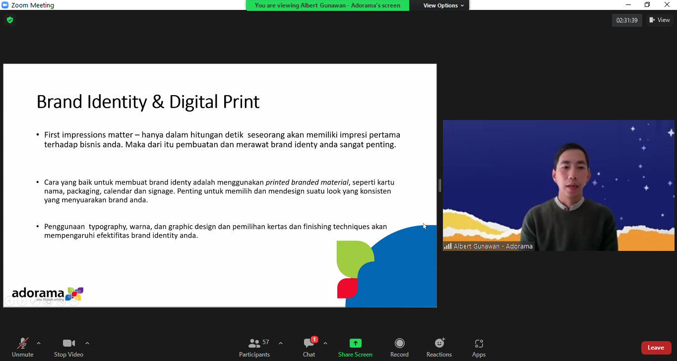 Albert Gunawan, Owner of Adorama who explained about "Effective Use of Digital Printing for Your Small Business Branding and Promotion".