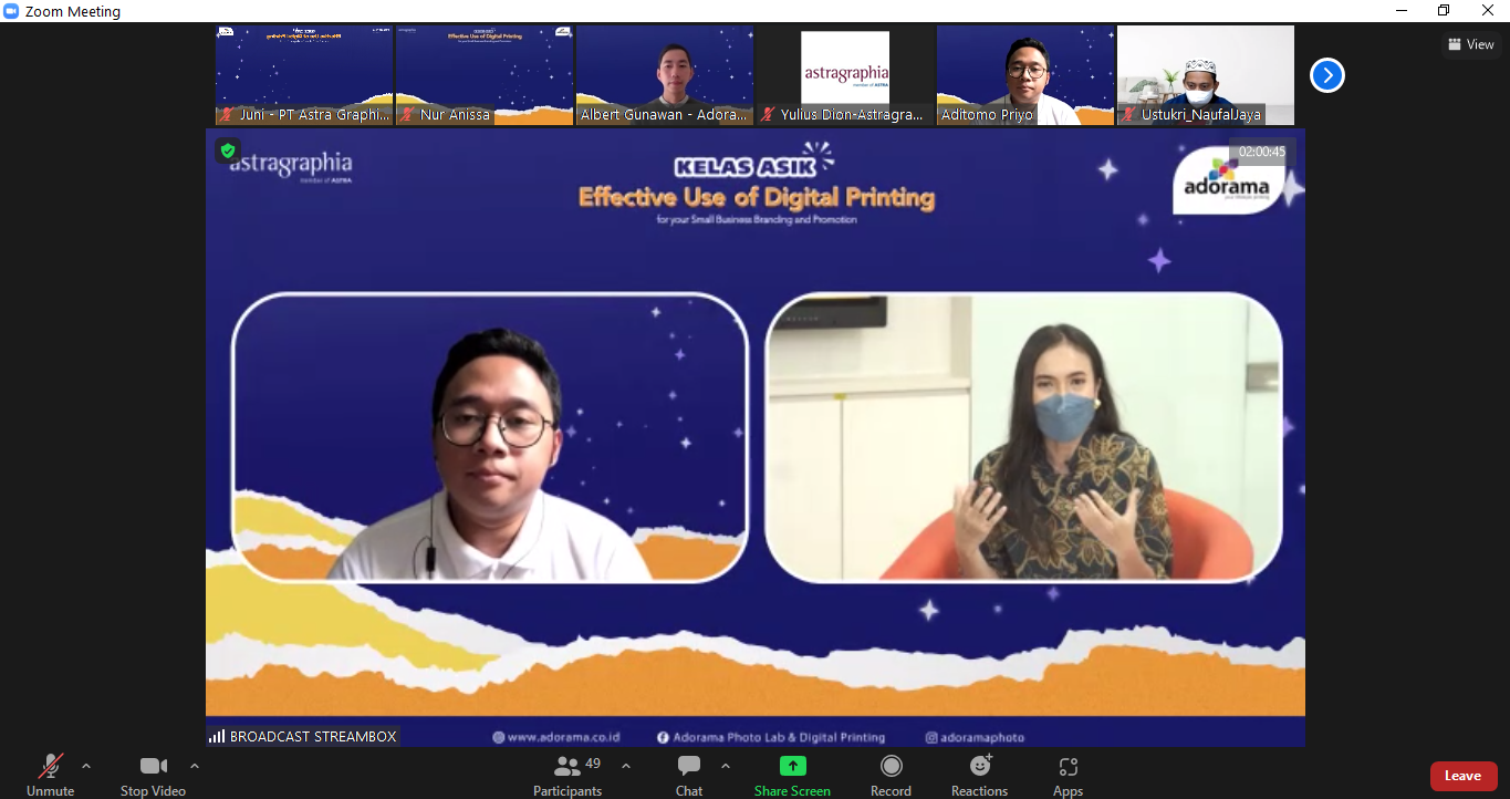 Astragraphia in synergy with graphic art customers Adorama held the Astragraphia Class for Creative Industries (ASIK Class) on September 7, 2022, for MSEs in the Jabodetabek area, with the title "Effective Use of Digital Printing for Your Small Business Branding and Promotion".